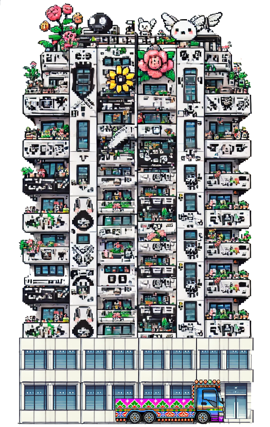 Scenic artist Amanda Hagy, renowned for her work on Hollywood films such as “JOKER” and “WEST SIDE STORY” will take charge of the entire design of the building’s shared spaces. From the entrance to the hallways, each floor will be transformed into a cinematic world with unique themes such as cyberpunk and “Dekotora” (decorated trucks). Visitors will be immersed in breathtaking environments that feel straight out of a movie.